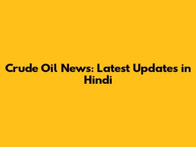Crude Oil News: Latest Updates In Hindi